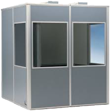 Кабіна для синхронного перекладу спеціальним чином спроектована і обладнана, добре освітлена та повністю ізольована від зовнішніх шумів.