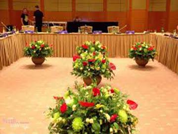 Квітами також оформляють виставкові стенди, кімнати для переговорів, невеликі конгрес зали , стійку реєстрації і хол приміщення.